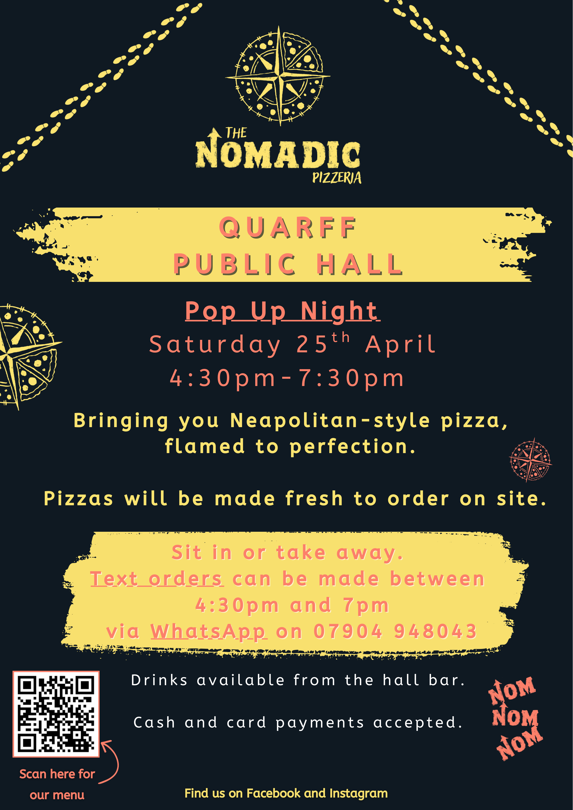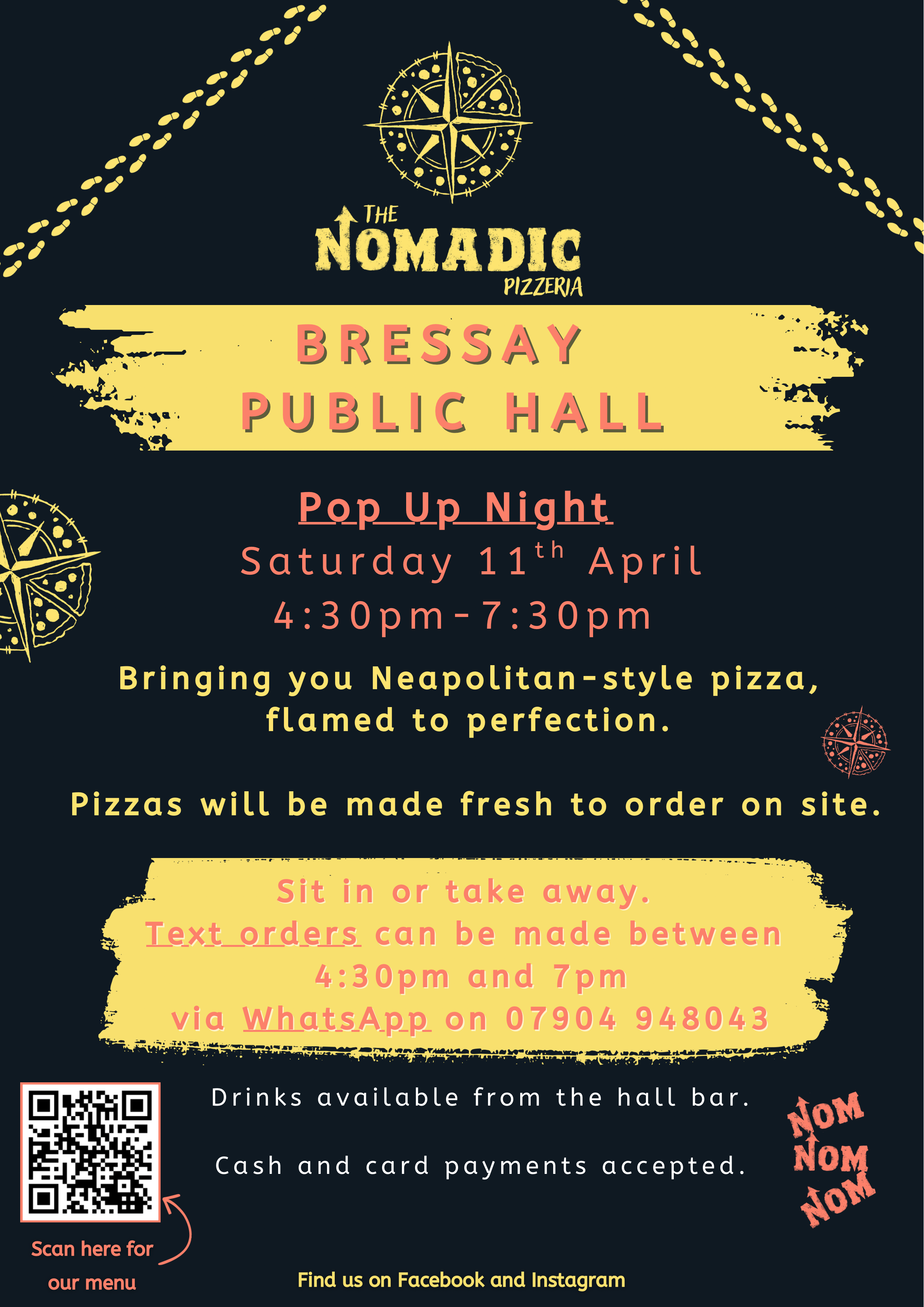 Upcoming pop-up events Bressay Public Hall Saturday 11th April 4:30pm-7:30pm Muckle Roe Public Hall Saturday 18th April4:30pm - 7:30pm Quarff Public Hall Saturday 25th April4:30pm - 7:30pm Menu