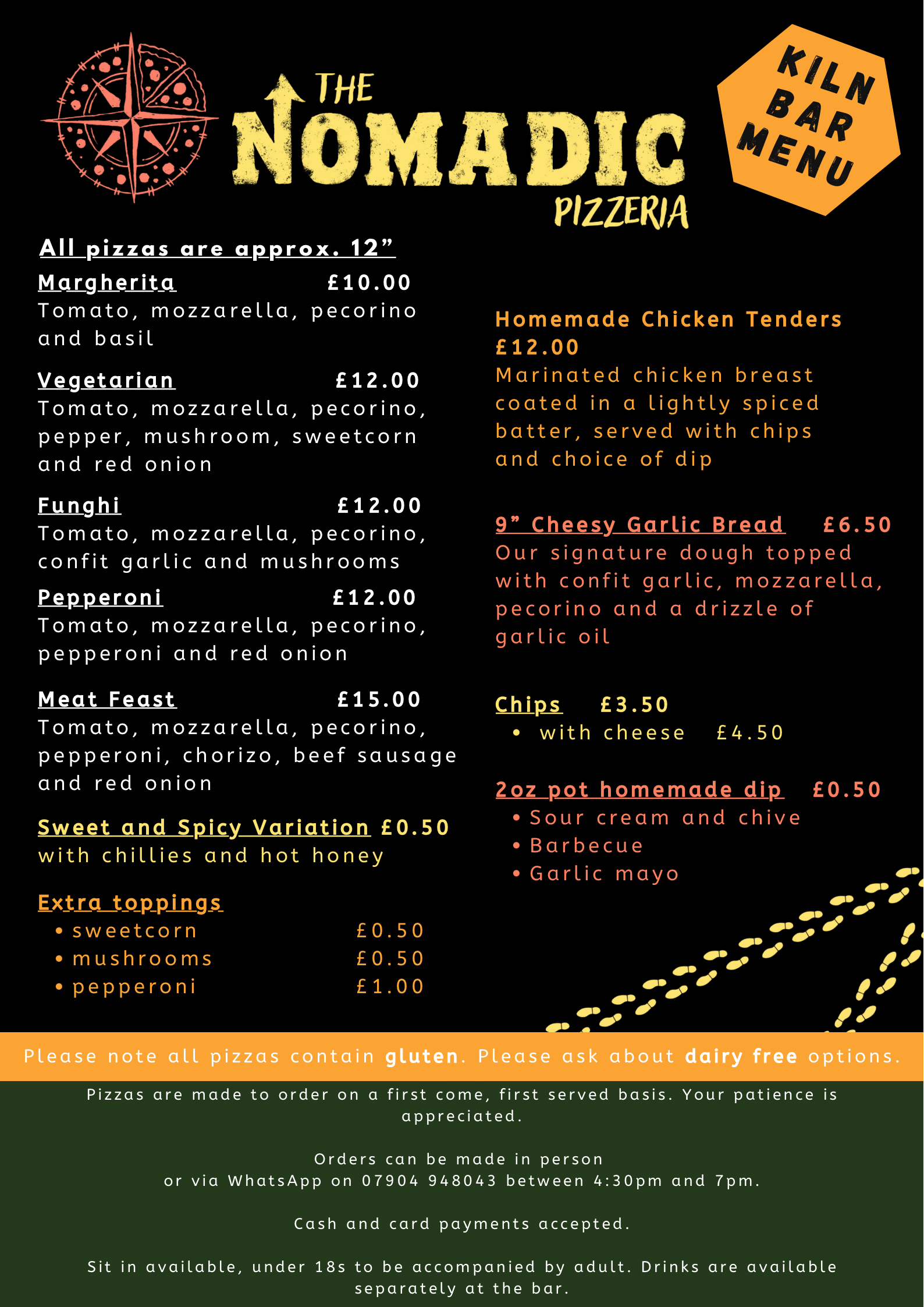 Menu for weekly pop-up at